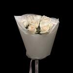 Букет белых ароматных садовых роз, упакованный в белую бумагу и белую коробку, с тематической открыткой по запросу. На фото букет в размере S, 9 шт.