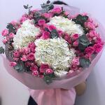 Гортензия - 3 шт. Кустовая роза - 10 шт. Эвкалипт Baby Blue - 5 шт.