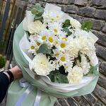 Изысканный сборный букет из гвоздик и хризантем — это сочетание нежности, свежести и яркости. Композиция идеально подойдет для поздравления на любой праздник, будь то день рождения, юбилей или просто знак внимания для близкого человека.