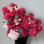 Сборная коробка из французских роз, кустовых роз и эвкалипта