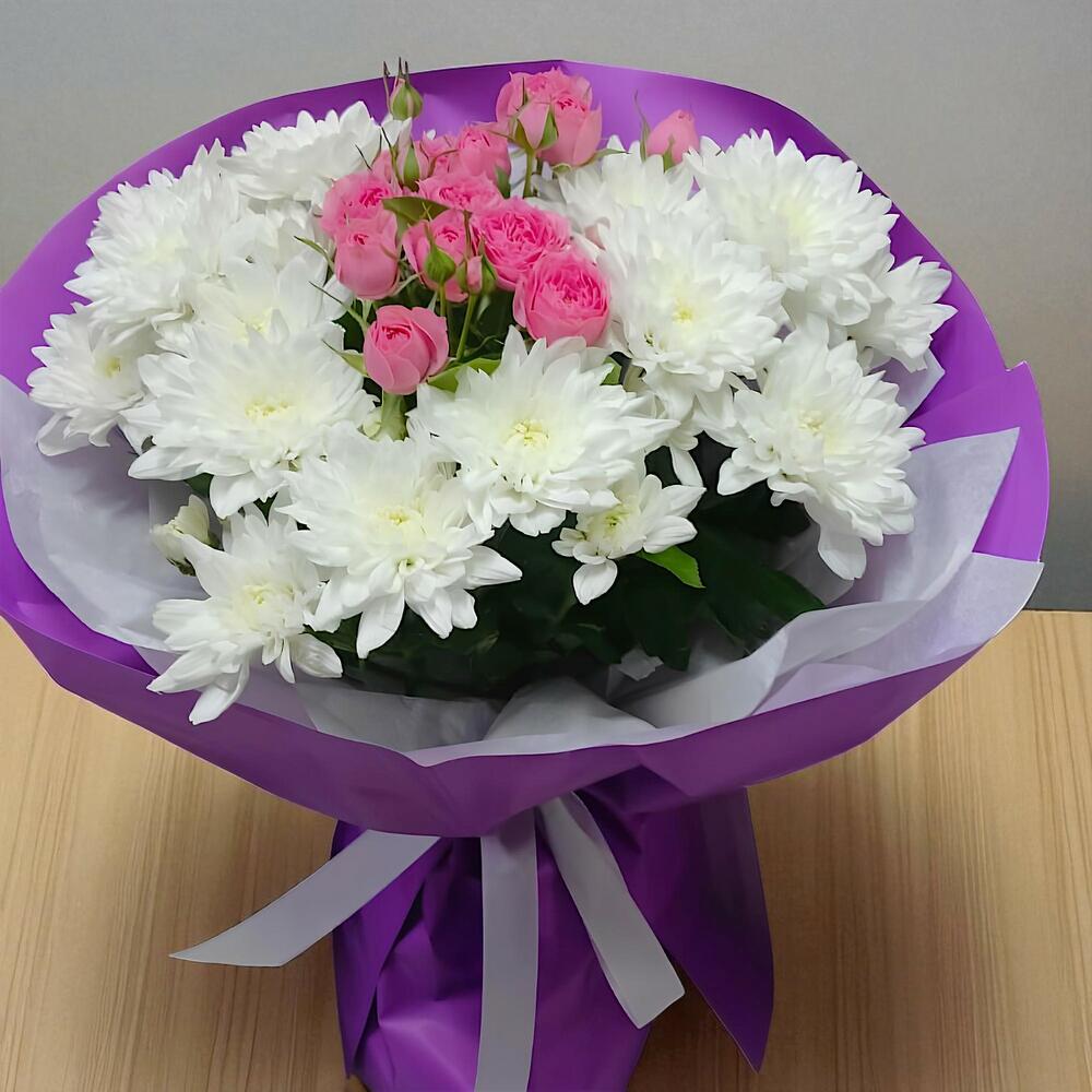 Хризантема балтика белая - 5 шт. спрей роза софи - 2 шт.