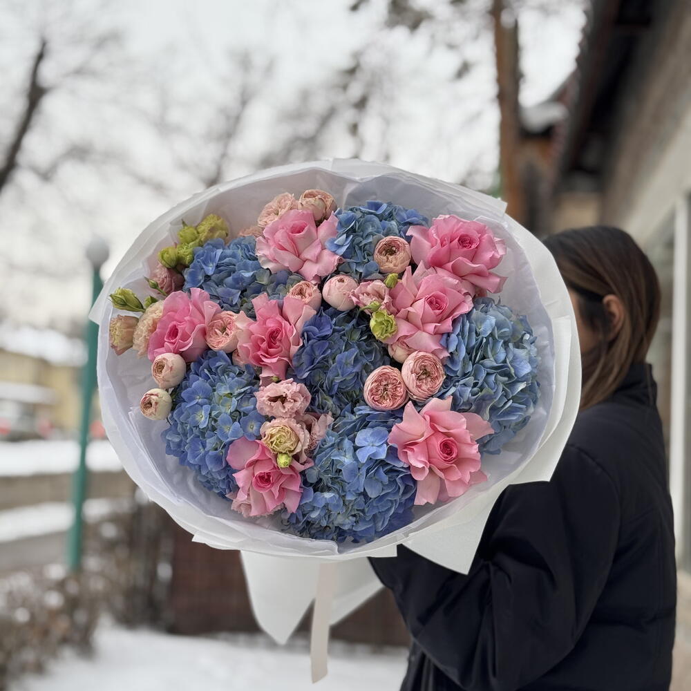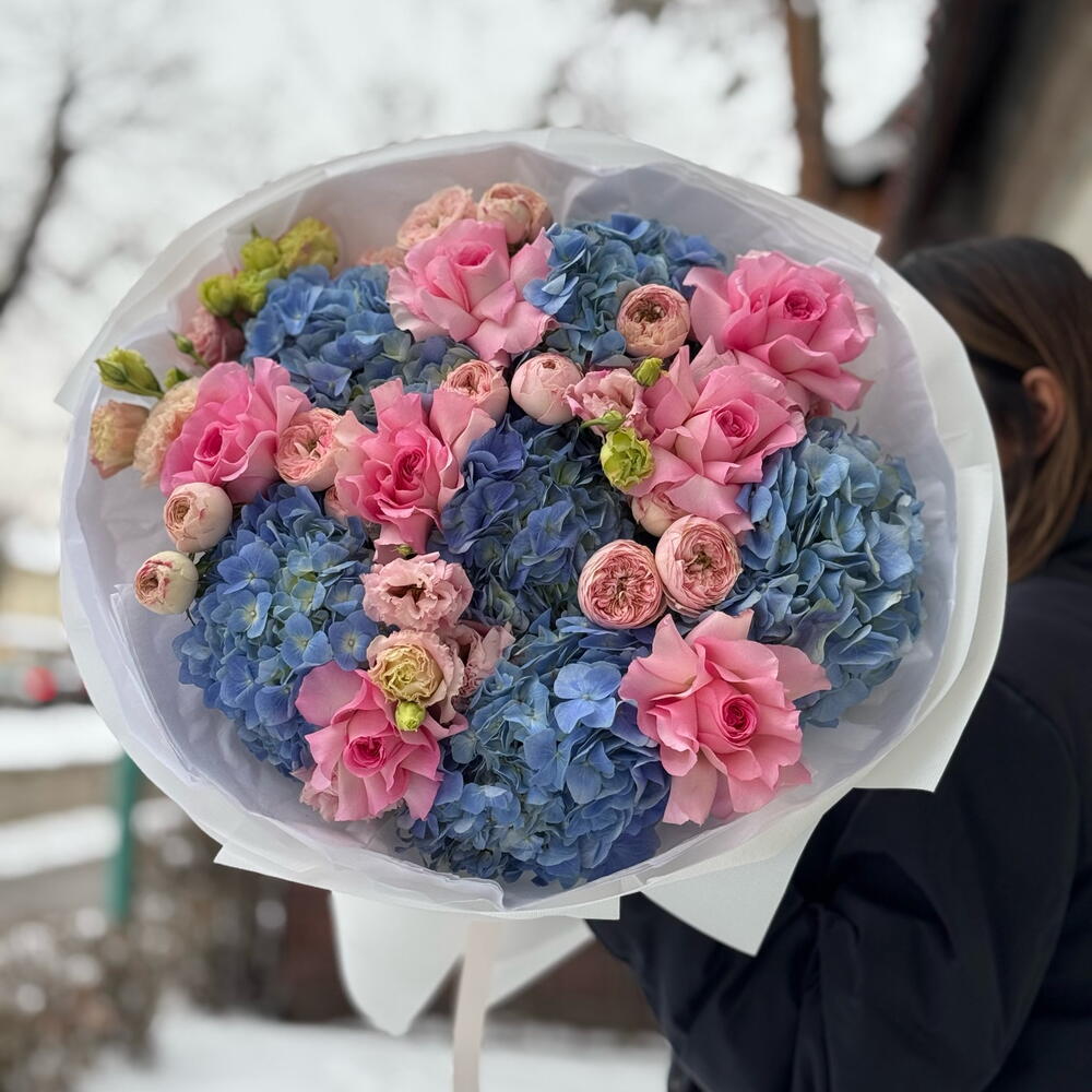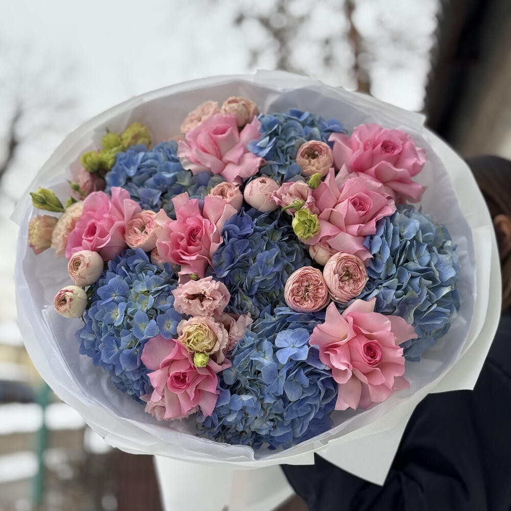 Гортензия - 6 шт. Роза - 7 шт. эустома розовая - 5 шт. кустовая пионы видная роза - 5 шт.