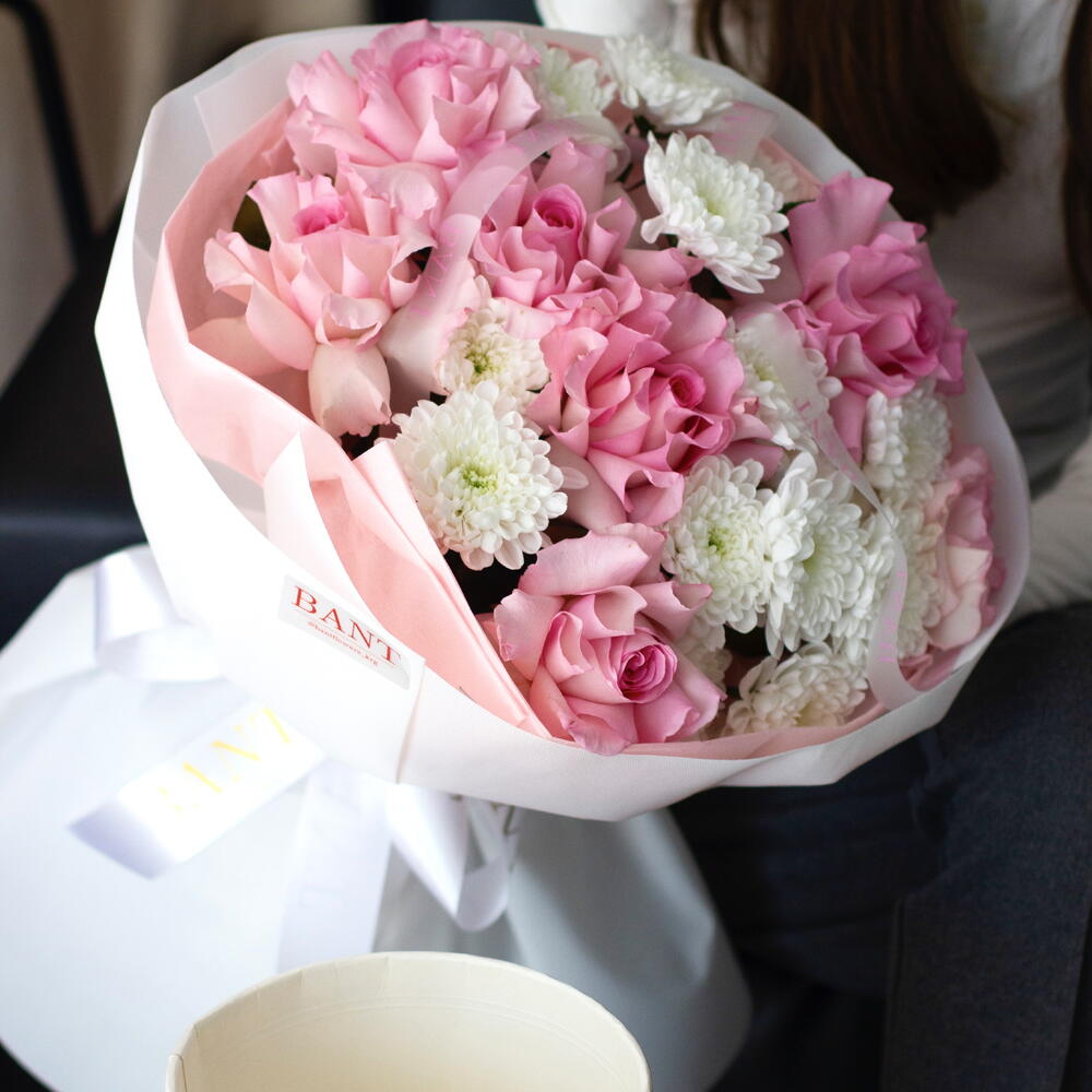 Хризантема кустовая - 4 шт. Роза - 7 шт.