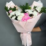 Гортензия - 1 шт. Хризантема кустовая - 2 шт. Диантус - 6 шт. Фисташка - 1 шт. розы - 6 шт.