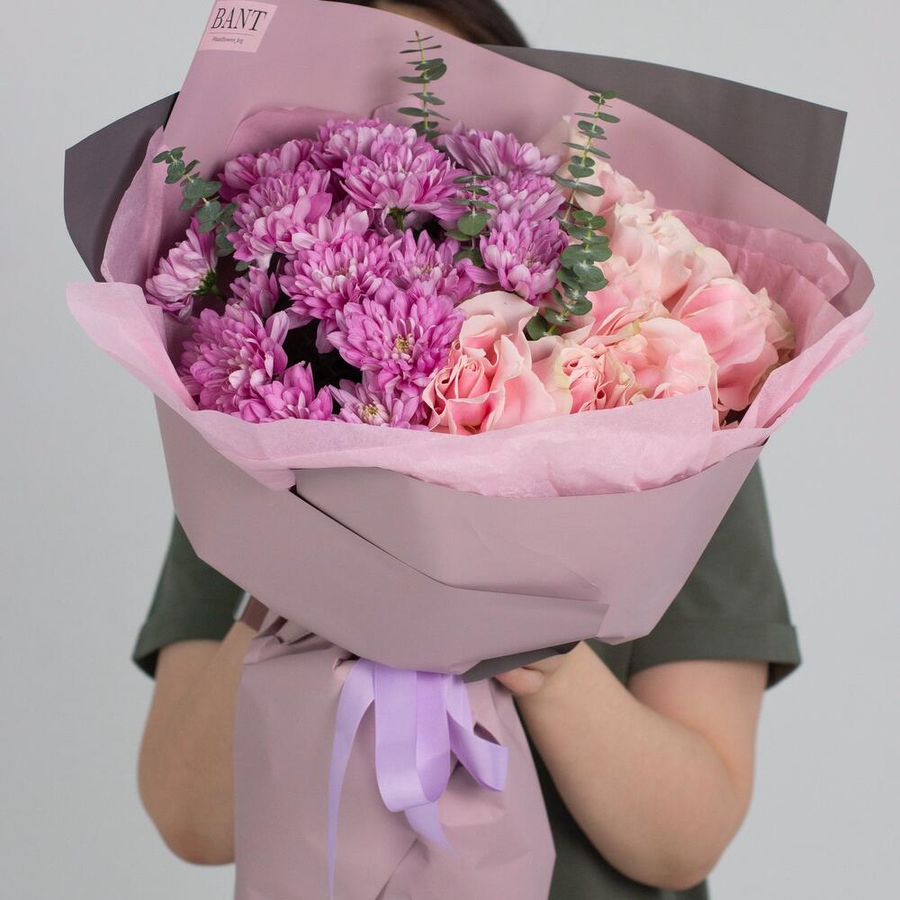 Роза - 7 шт. хризантемы кустовые - 4 шт.