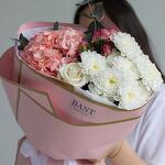Гортензия - 1 шт. Хризантема кустовая - 2 шт. Роза - 1 шт. Кустовая роза - 1 шт.