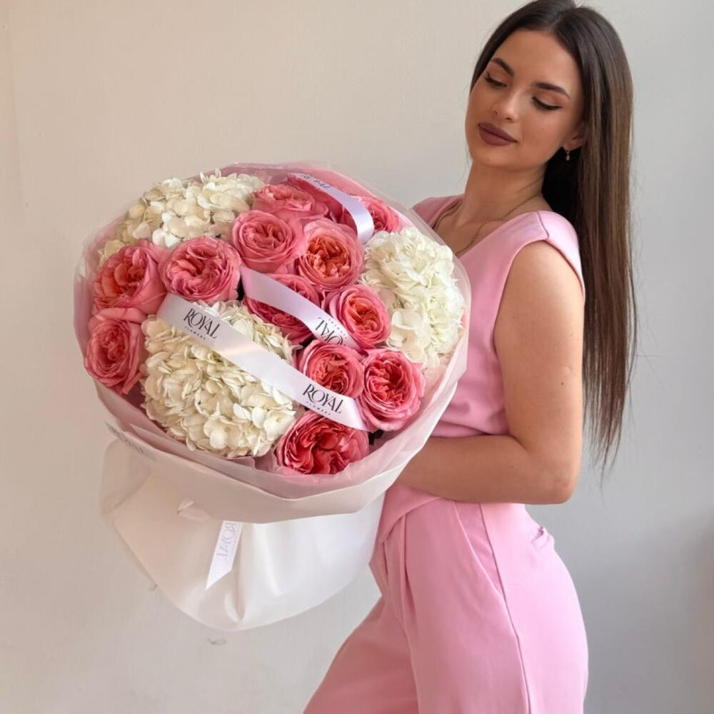 Гортензия - 1 шт. Роза пионовидная - 15 шт.