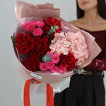 Гортензия - 1 шт. Эвкалипт - 5 шт. Роза - 5 шт. Кустовая пионовидная роза - 2 шт.