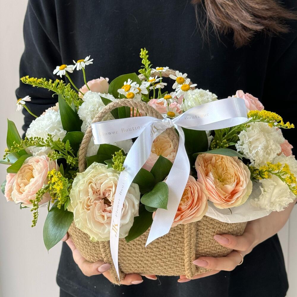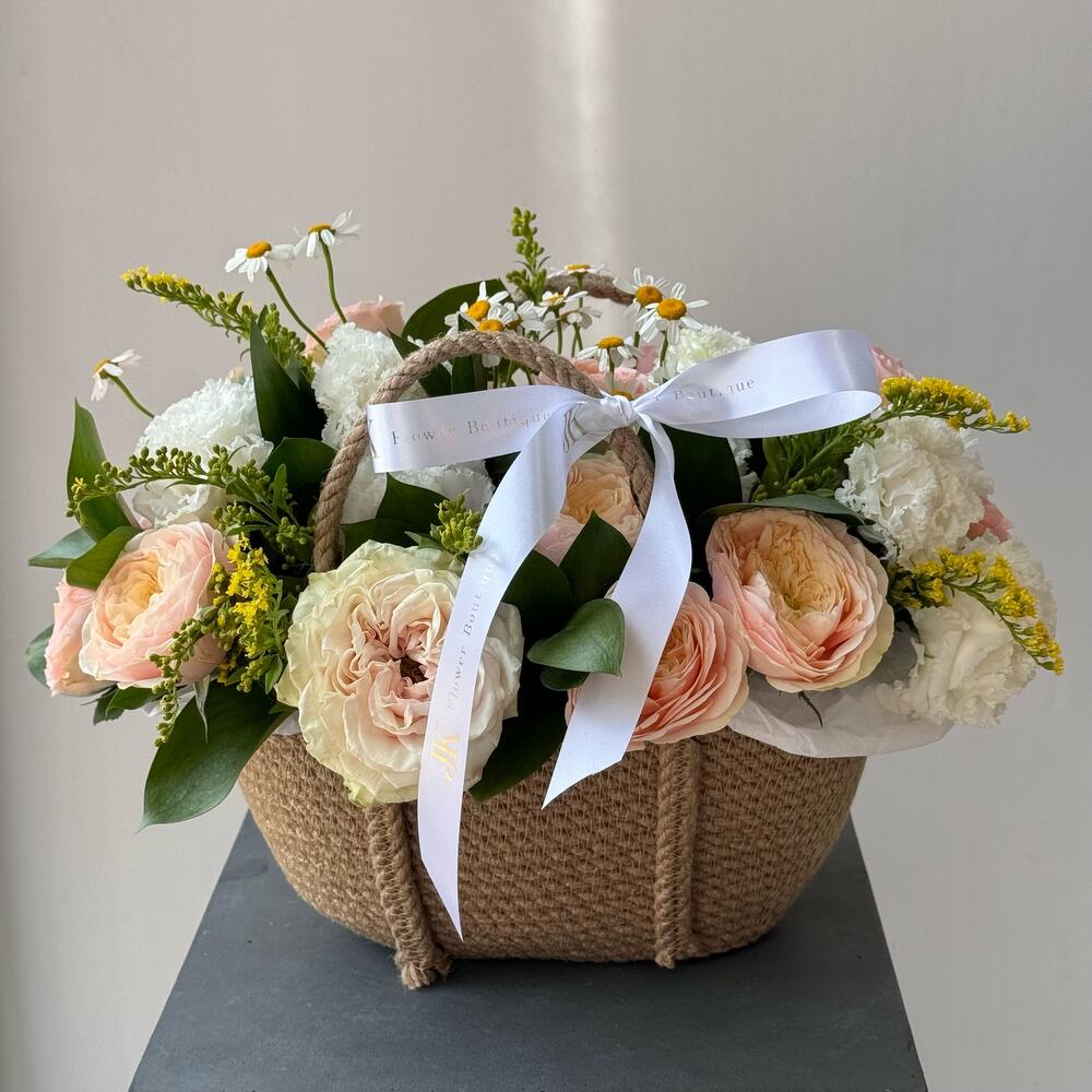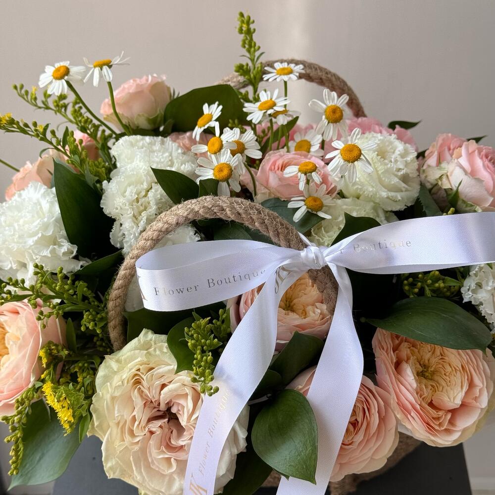Нежная сборная корзина из премиальных цветов