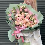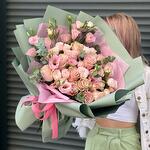 Лизиантус - 7 шт. Эвкалипт - 3 шт. Спрей роза - 3 шт. розы - 13 шт.