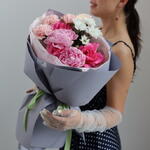 Пион - 2 шт. Хризантема кустовая - 1 шт. Роза - 3 шт. Диантус - 3 шт.