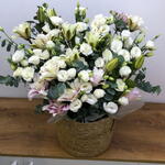 Эвкалипт - 3 шт. эустома белая - 16 шт. лилия пионы видные - 5 шт.
