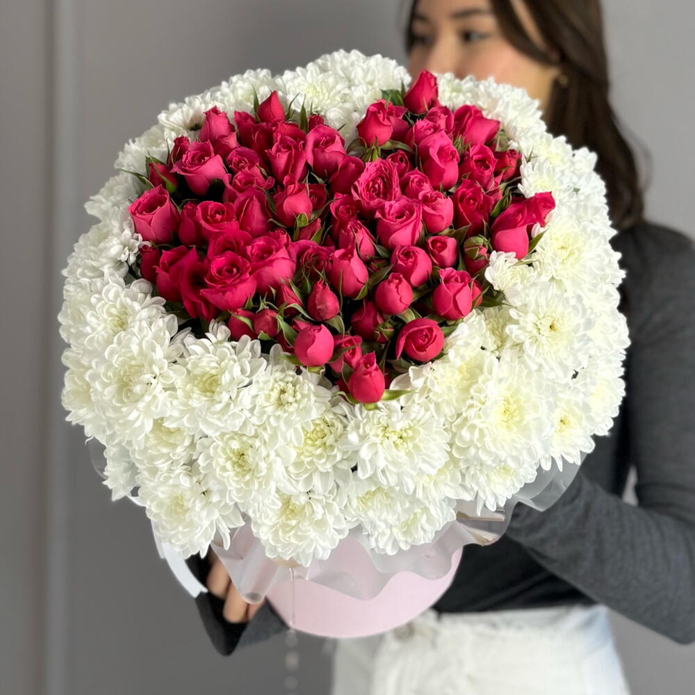 Хризантема кустовая - 9 шт. Кустовая роза - 8 шт.