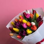 тюльпаны микс - 25 шт. аква бумага - 1 шт. бенто торт молочная девочка 250г - 1 шт.