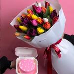Сет Букет из 25 тюльпанов и бенто торт