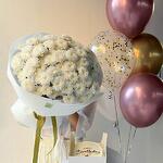Цветочная нежность – трогательный сет, созданный для самых искренних поздравлений. Пышный букет белоснежных хризантем и изящный бенто-торт Happy Birthday дополняют праздничные шарики, создавая атмосферу тепла и радости.