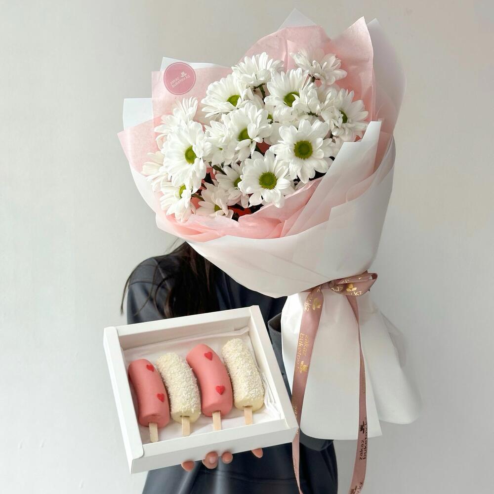 Хризантема - 1 шт. банан в шоколаде - 4 шт.