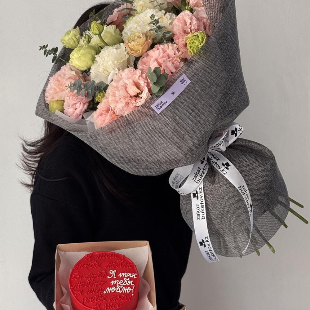 Лизиантус - 9 шт. Эвкалипт - 1 шт. бенто-торт s - 350 гр.