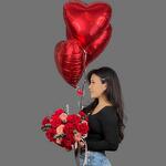 Стильный букет из красных роз + сердце из воздушных шаров. Когда хочется подчеркнуть особенность момента и сделать его незабываемым!