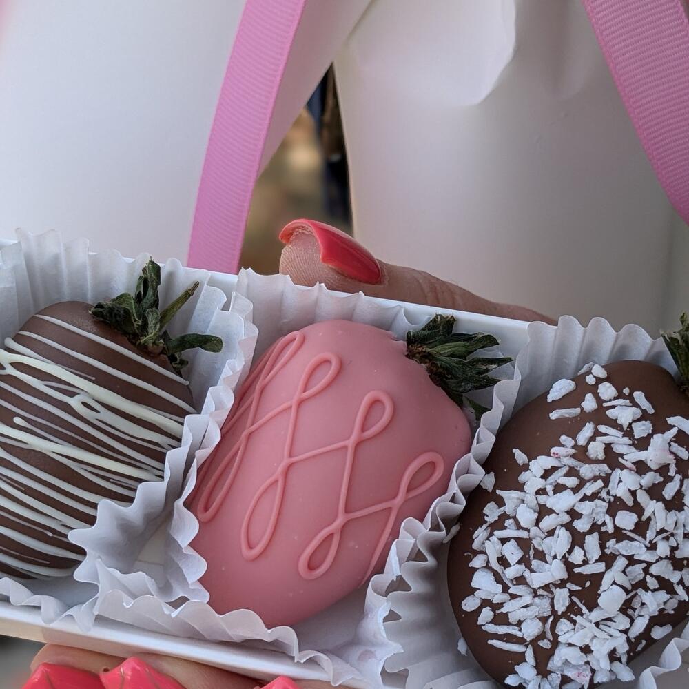 Гортензия - 1 шт. Клубника в шоколаде - 5 шт. розы - 3 шт.