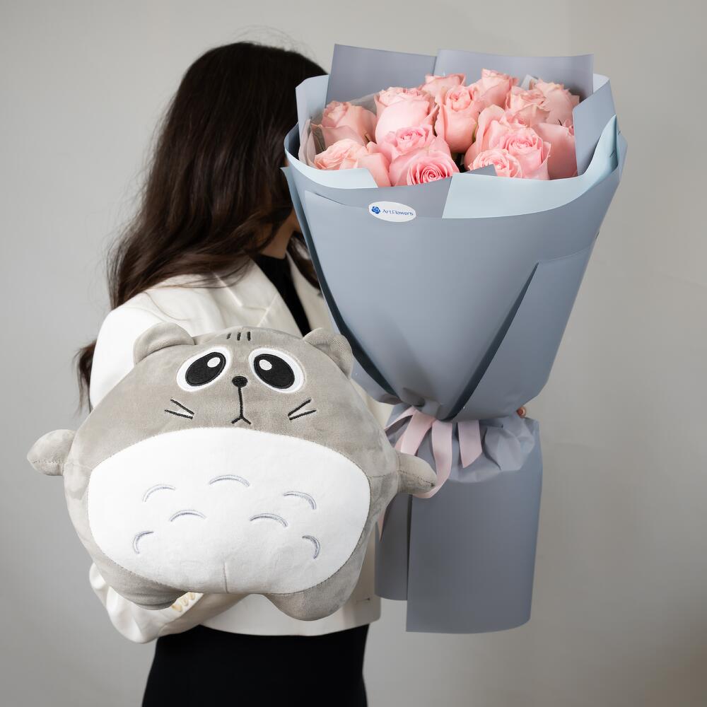 Нежный букет из 15 Голландских роз 50 см с милым котенком. Через нашего котика передадите как Вы скучаете и грустите без нее.