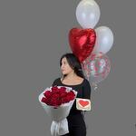 Букет из алых роз + воздушные шары в серебристо-красных оттенках + нежный сладкий комплимент. Этот сет – воплощение страсти и романтики. Подарите любимой эмоции, которые скажут громче любых слов!