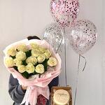 Роза Голландская - 15 шт. шар с конфетти (30 см) - 3 шт. бенто торт молочная девочка (350 гр) - 1 шт.