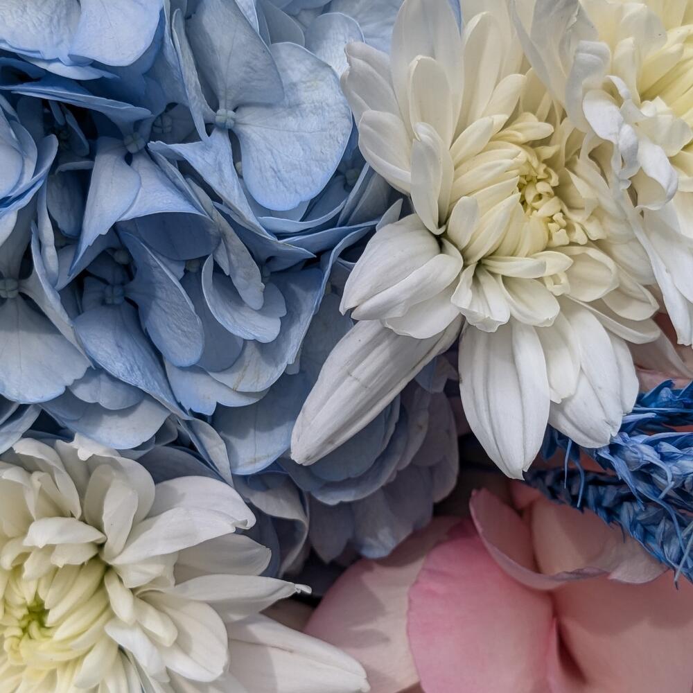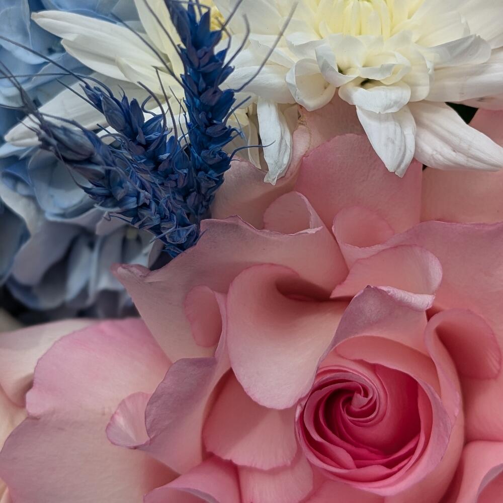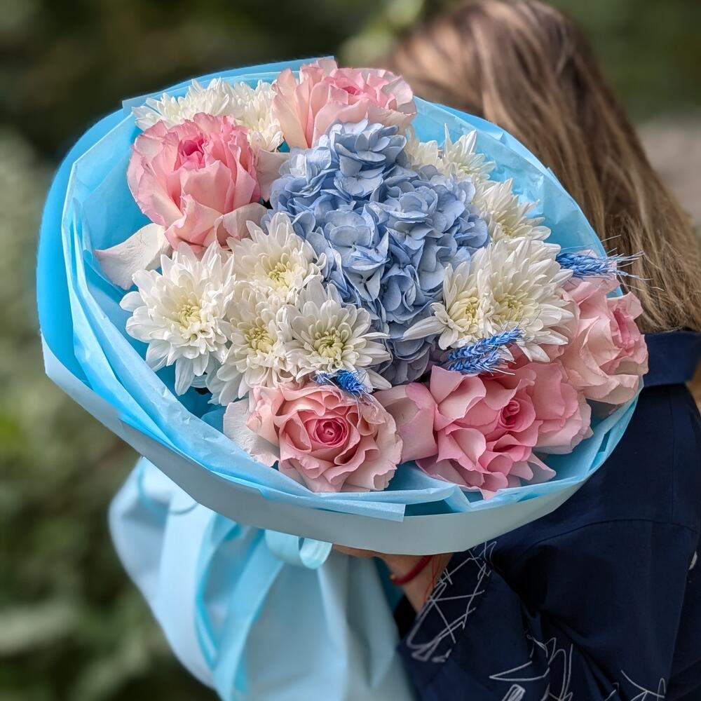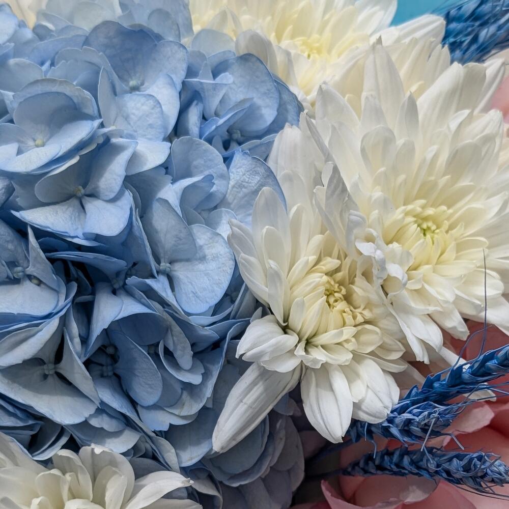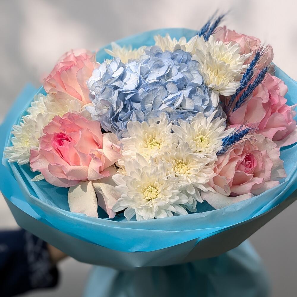 Гортензия - 1 шт. Хризантема кустовая - 4 шт. Роза - 5 шт. тритикале(пшеница) - 6 шт.