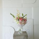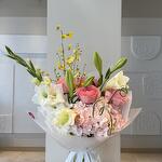 Гортензия - 1 шт. Лилия - 2 шт. Пионовидная роза - 4 шт. Гладиолус - 1 шт. онцидиум - 1 шт. аллиум дреды - 2 шт.