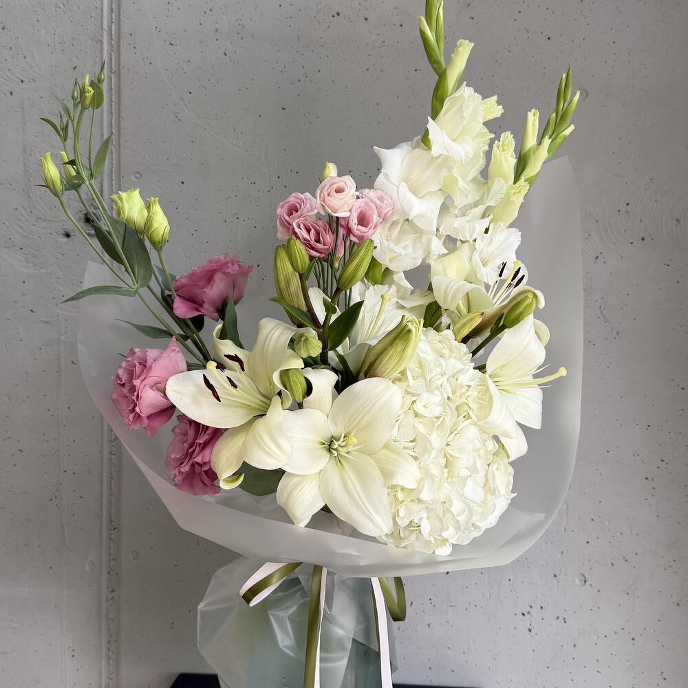 Гортензия - 1 шт. Лизиантус - 2 шт. Лилия - 3 шт. Гладиолус - 2 шт.