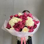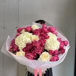 Гортензия - 2 шт. розы пионовидные кустовые - 13 шт. розы пионовидные - 5 шт.