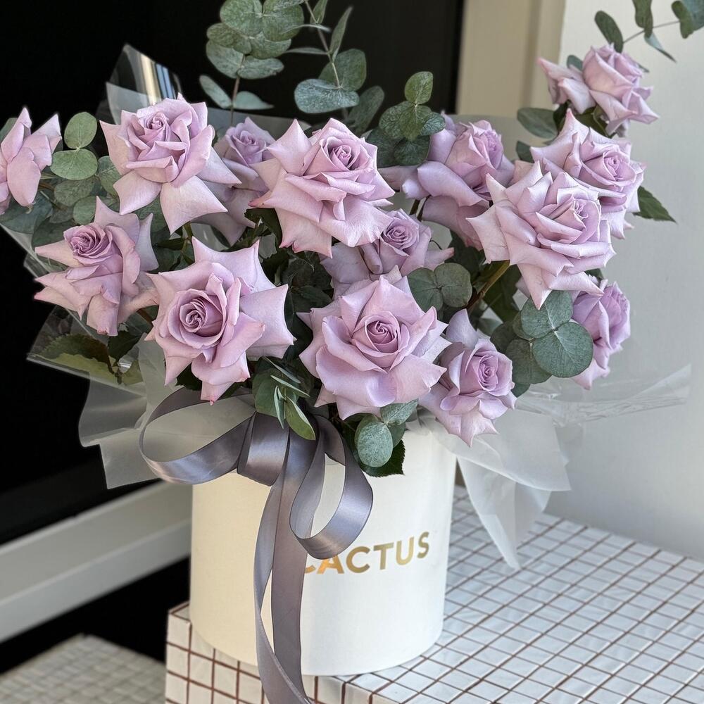 Эвкалипт - 3 шт. Роза - 15 шт. Коробка - 1 шт.