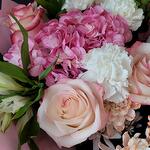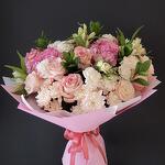 Альстромерия - 4 шт. Гортензия - 2 шт. Рускус - 6 шт. Хризантема кустовая - 5 шт. Роза - 9 шт. Упаковка дизайнерская - 1 шт. Слюда упаковка - 2 шт. открытка с вашими пожеланиями - 1 шт.