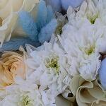 Гортензия - 3 шт. Хлопок - 7 шт. Хризантема кустовая - 7 шт. Роза - 9 шт. Лагурус (сухоцвет) - 15 шт.