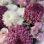 Пышный сборный букет в фиолетово-белой палитре — это сочетание изящества, глубины и лёгкой загадочности. Он создан для тех, кто любит букеты с характером: воздушные, многослойные и очень выразительные. В составе: • кустовые хризантемы — за объём и стойкость, • хризантемы бигуди — за необычную фактуру, • сантини — за свежесть и яркие акценты, • кустовые розы — за нежность и мягкость формы, • лимониум — за лёгкую дымку и утончённость, • французская роза — как главный штрих элегантности. Фиолетовые оттенки добавляют глубины и загадочности, а белые — чистоты и светлого настроения. В итоге букет получается не просто красивым, а впечатляющим и запоминающимся, идеально подходящим для важного события, поздравления или неожиданного сюрприза. Стойкость букета высокая — хризантемы сохраняют свежесть до 10–12 дней при правильном уходе, а лимониум становится сухоцветом. Заказывайте букет от Виновники flowers — потому что эмоции должны быть красивыми🌷