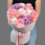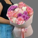 Гортензия - 1 шт. Хризантема кустовая - 2 шт. Гвоздика - 1 шт. Пионовидная роза - 2 шт. джульетта - 2 шт. розы - 3 шт. аква бумага - 1 шт.