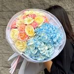 Гортензия - 2 шт. Роза - 6 шт. Кустовая роза - 3 шт. Гербера - 2 шт.