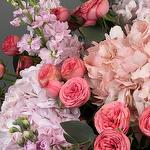 Роскошная композиция в плетёной корзине из пионов, кустовых роз и душистого левкоя в мягкой палитре розовых и кремовых оттенков. Букет словно утренний свет — лёгкий, романтичный и наполненный жизнью.
