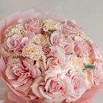 Диантус - 8 шт. Стифа - 1 шт. Роза пинк мондиаль - 13 шт.