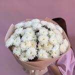 Объёмный букет из белоснежных хризантем в нежной упаковке. Универсальный подарок для любого повода — символ чистоты, заботы и тепла.