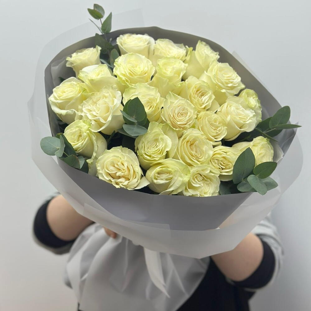 Роза Эквадор - 25 шт. Эвкалипт Цинерея - 3 шт.