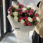 Роза белая - 9 шт. Спрей роза - 6 шт. аква бумага - 4 шт.
