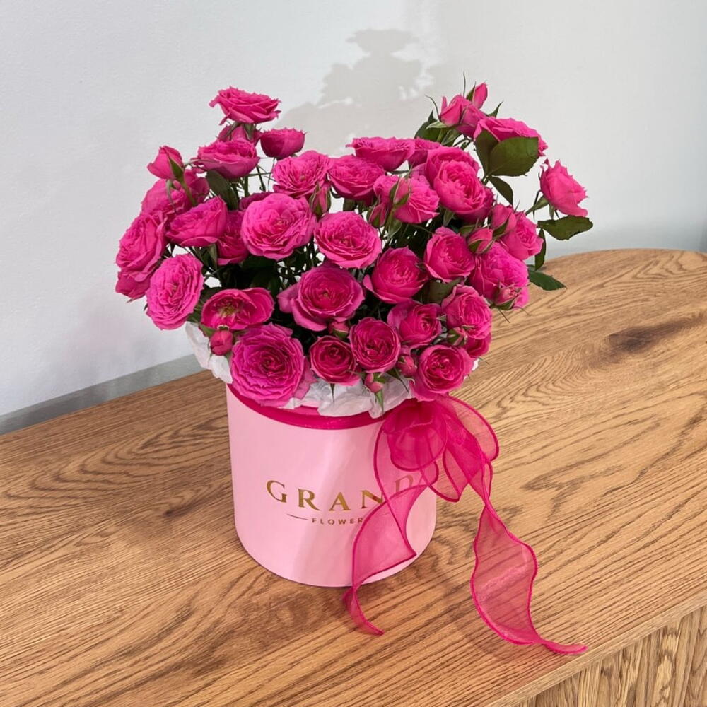 Коробка шляпная - 1 шт. Оазис флористический - 1 шт. софия кустовая роза - 5 шт.