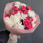Хризантема кустовая - 3 шт. Спрей роза - 3 шт.