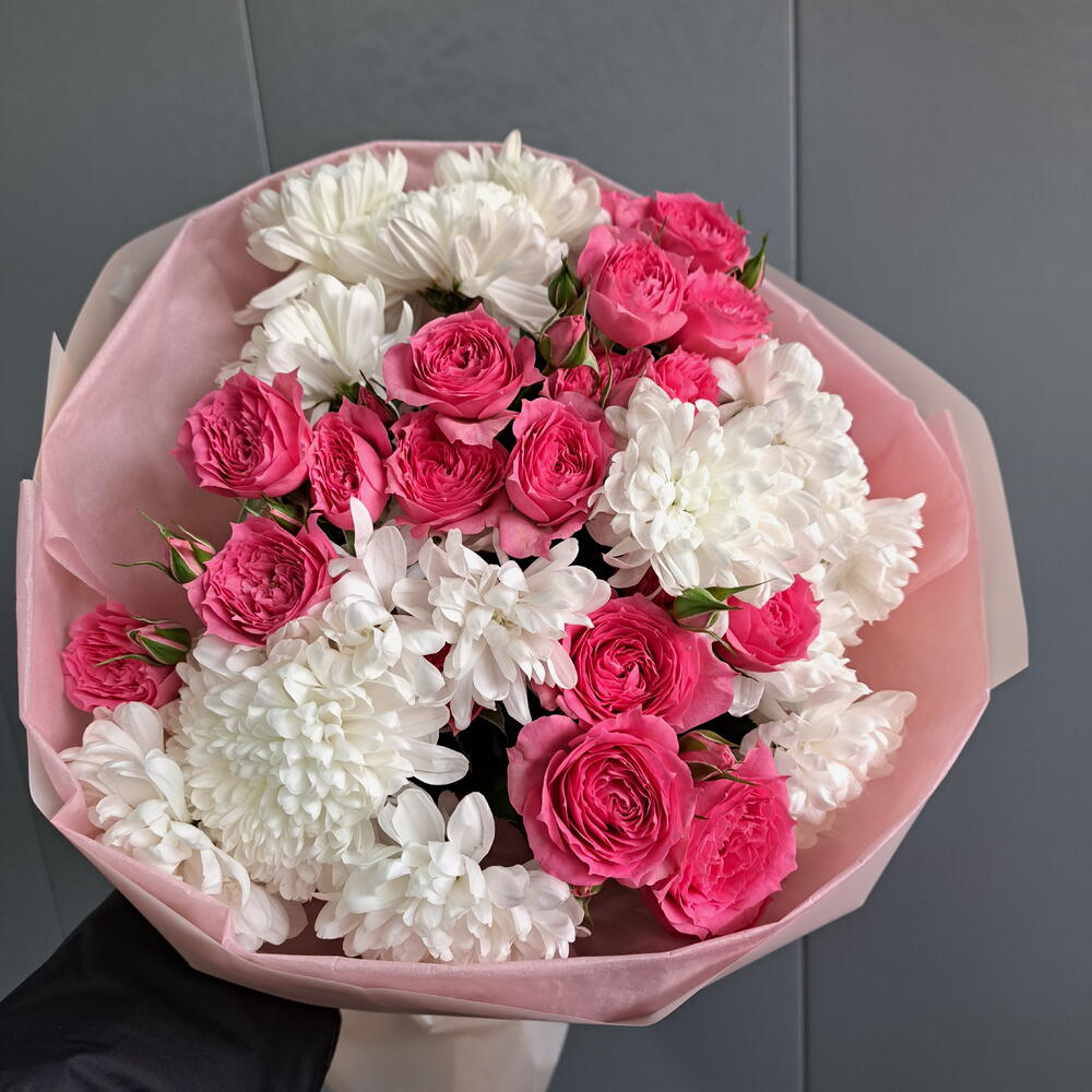 Хризантема кустовая - 3 шт. Спрей роза - 3 шт.