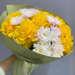 Роза - 8 шт. хризантемы кустовые - 4 шт.