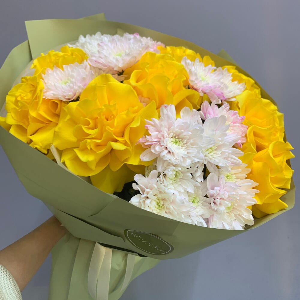 Роза - 8 шт. хризантемы кустовые - 4 шт.