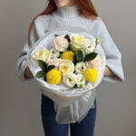 Солнечный летний букет с пионовидными розами💛 Подкормка и инструкция по уходу за цветами, утепление букета для транспортировки в комплекте