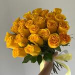 Энергичный и жизнерадостный монобукет из 21 желтой розы наполнит вашу жизнь солнечным светом и теплом. Прекрасно подходит для подарка на любой праздник или просто ради поднятия настроения. Желтые розы - символ дружбы, радости и уважения, они станут идеальным выбором для выражения своих ярких и искренних чувств.