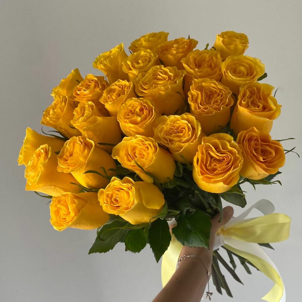 Энергичный и жизнерадостный монобукет из 21 желтой розы наполнит вашу жизнь солнечным светом и теплом. Прекрасно подходит для подарка на любой праздник или просто ради поднятия настроения. Желтые розы - символ дружбы, радости и уважения, они станут идеальным выбором для выражения своих ярких и искренних чувств.